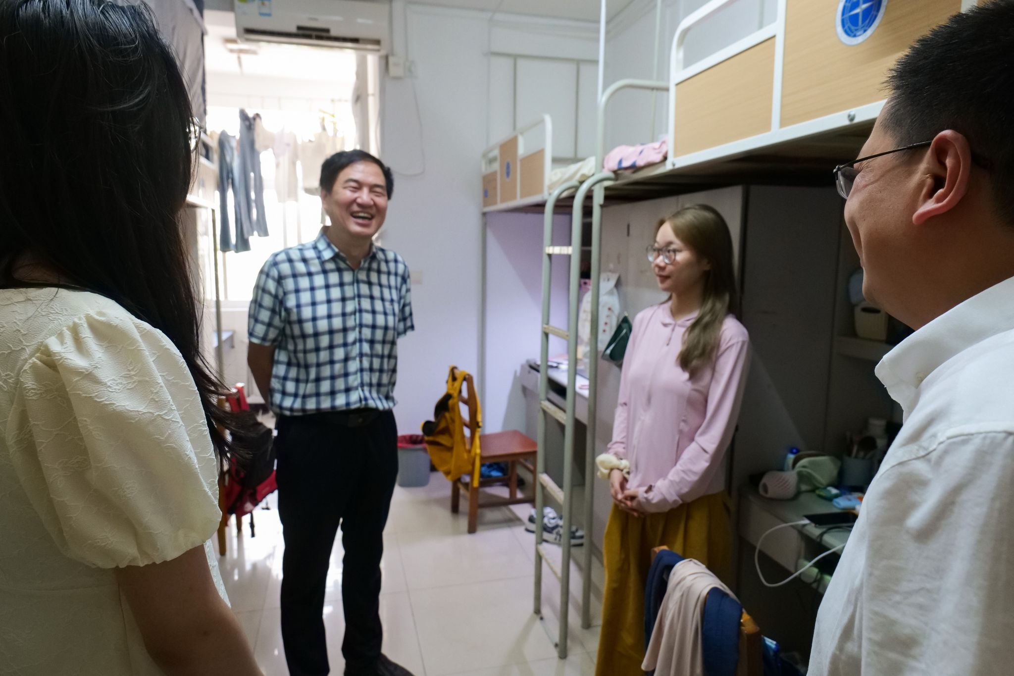 领导在南望山校区深入走访学生宿舍,与学生展开亲切交谈。