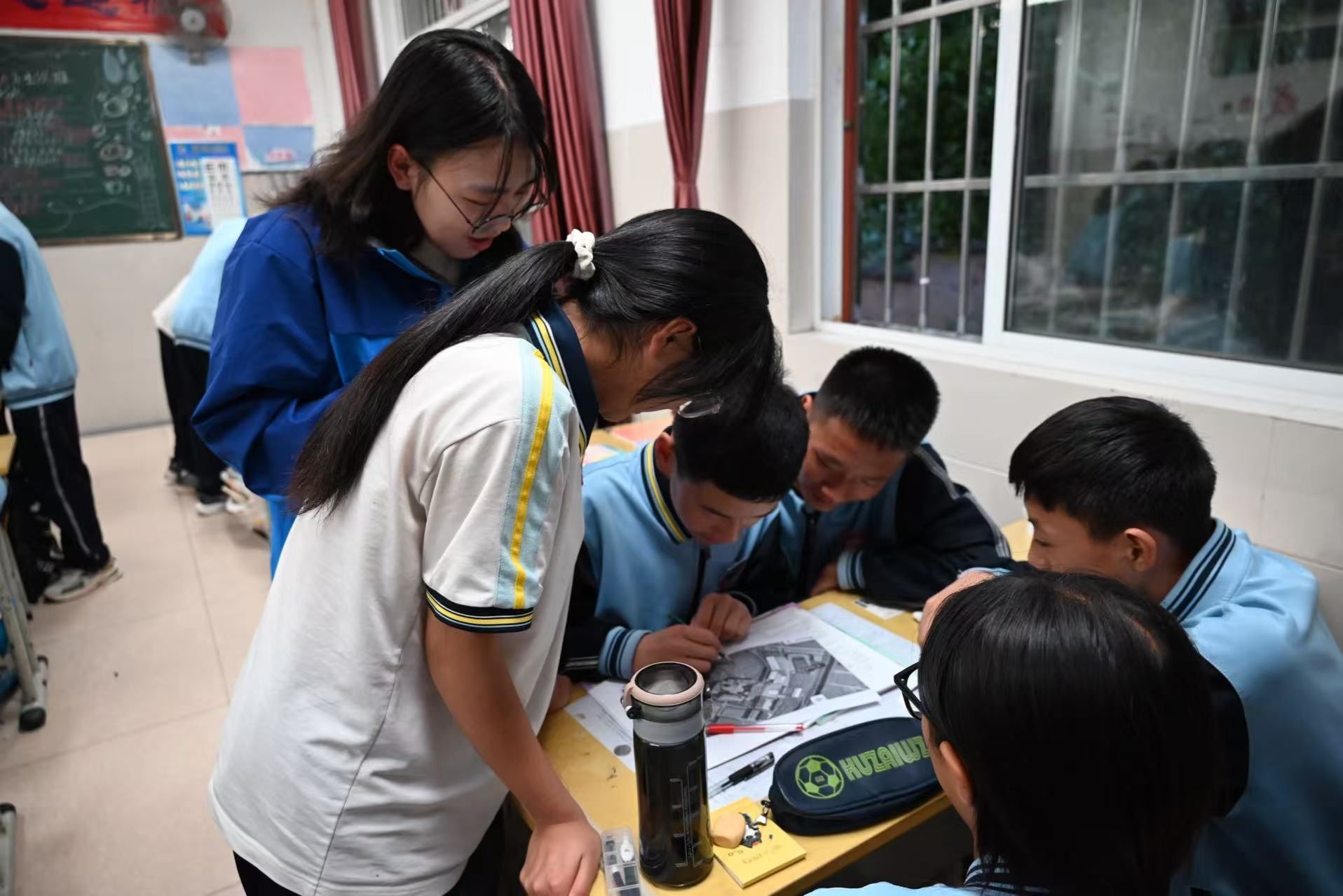 研究生支教团成员周佳贺正在给同学们上一堂生动的“土地知识课”。通过案例解析与互动问答,她系统介绍了我国土地资源的稀缺性、重要性及保护紧迫性。“以前只知道土地种庄稼,现在明白了每一寸耕地都关乎饭碗安全,”一名学生在课后表示,“要从小养成珍惜土地的习惯。”