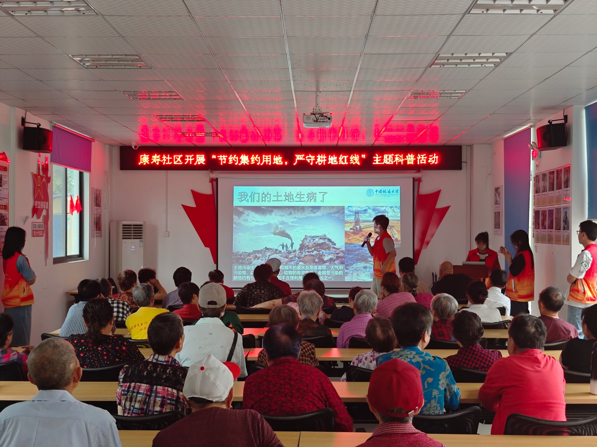志愿者深入武汉青山康寿社区,举办“土地知识进社区”科普活动。活动现场设置了土地故事分享、互动问答区和趣味转盘抽奖环节,面向社区居民及在校学生普及土地资源管理知识与环保理念,有效增强了基层群众耕地保护与节约集约用地意识。“这种形式很新颖,答题还能学知识。”现场居民表示。这场接地气的科普,让守护“饭碗田”的责任感,在邻里街坊间传递、凝聚。