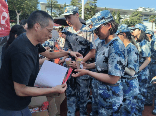 各班班主任们为新生发放慰问物资,与同学们亲切交流,详细询问大家的训练感受与生活状况,反复提醒注意防暑降温与个人防护。面对B体育