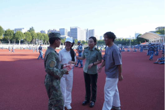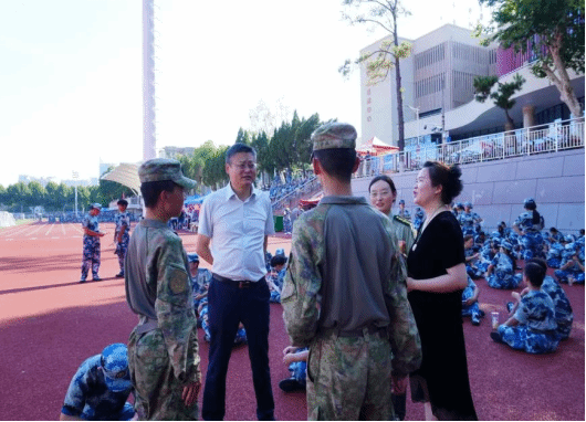 党委书记徐岩、党委副书记龚丽带队,与2025级新生班主任一行前往军训训练场,看望并慰问正在刻苦训练的2025级全体新生,为大家送去清凉物资,传递B体育