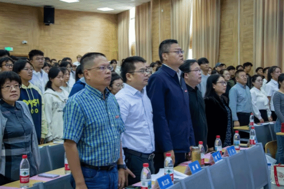党委书记徐岩、院长龚健、副院长王忠、朱江洪、吕凌燕等全体在汉院领导、各系负责人、教师代表、新生班主任、学工组辅导员及兼辅、新生各班助班与2025级全体新生共同参与此次典礼。典礼在庄严的国歌声中拉开帷幕。