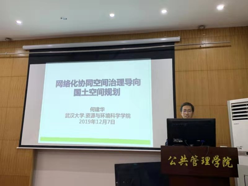 何建华教授、焦利民教授来我校做学术报告。王占岐教授、龚健教授、胡守庚教授等土地资源管理系教师及全体在校研究生参加了讲座。