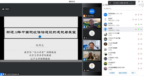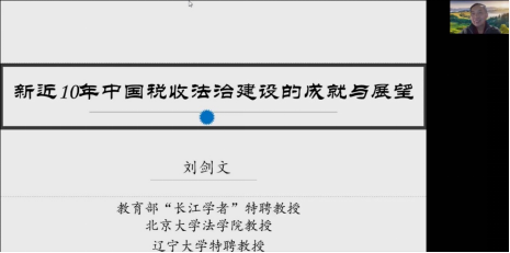 刘剑文教授应邀为我校师生作题为“新近10年中国税收法治建设的成就与展望”的线上学术讲座。讲座由胡守庚院长主持。
