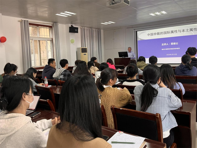 学生就仲裁和审判思维上的实质区别,仲裁庭证明责任分配规则的规范路径与程序思维、仲裁投资里的税收等问题进行了互动交流。