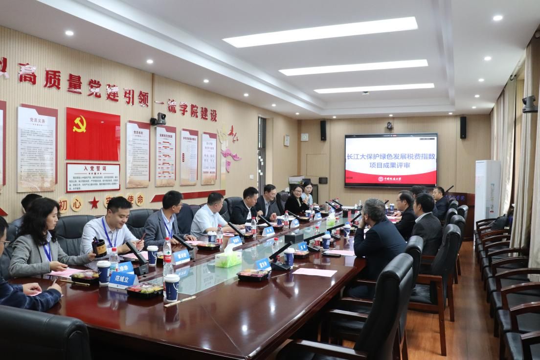 2025年11月2日,《长江大保护绿色发展税费指数》研究成果评审会在中国地质大学(武汉)成功召开。来自北京大学、清华大学、南京大学、浙江大学、华中农业大学、中国国土勘测规划院、中国人民大学等机构的八位专家学者组成评审组,宜昌市税务局相关领导及中国地质大学(武汉)项目团队成员共同参会。