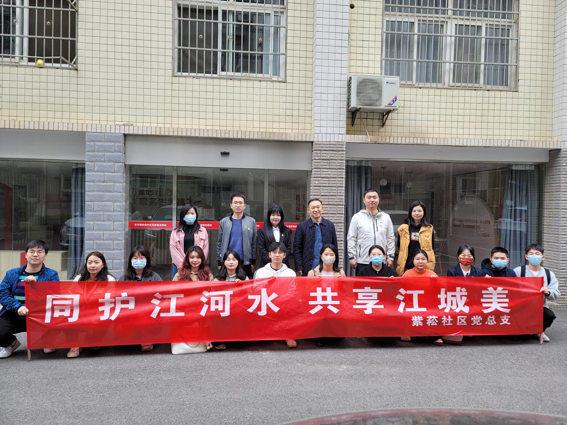 学生党建办公室、团委与洪山区关山街道紫菘社区举行志愿服务结对共建暨“同护江城水 共享江城美”资源保护科普交流活动。紫菘社区党总支魏书记,武汉市水文局刘书记,水环境监测中心汪主任,B体育官网