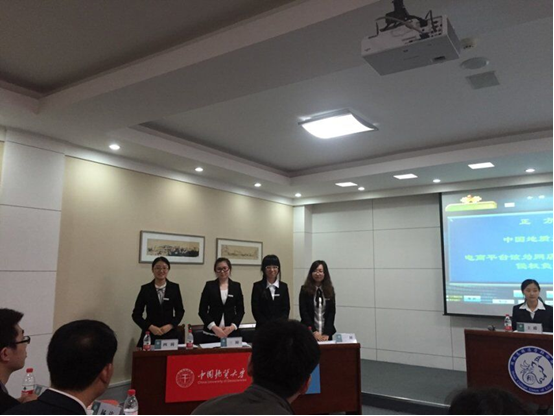 为正方,李琴鸽、刘杨明珠、曹勐菲、武鑫蓉四名同学与武大辩友共同向观众展示了一场精彩的辩论赛,最终地大以5:0的优势打败武大,最佳辩手武鑫蓉。