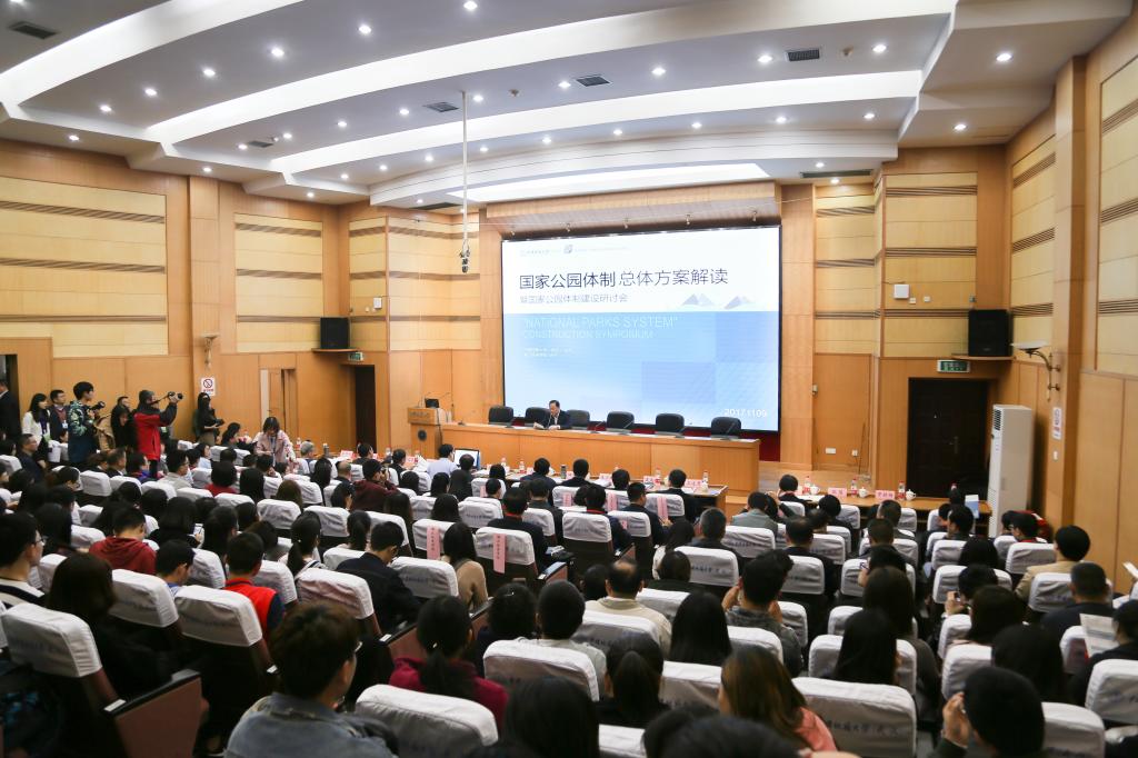 和科学技术发展研究院共同承办的国家公园体制总体方案解读暨国家公园体制建设研讨会召开。来自国家公园领域的相关政府部门领导、专家学者,校领导何光彩、王焰新、成金华,200余名师生代表齐聚我校,紧紧围绕党的十九大报告提出的“构建国土空间开发保护制度,完善主体功能区配套政策,建立以国家公园为主体的自然保护地体系”的重点任务,深入交流探讨依照《建立国家公园体制总体方案》开展建设所需的理论依据、科学技术支持、政策创新和实践操作,旨在为正在进行的国家公园体制试点区域提供借鉴。党委书记何光彩主持会议。