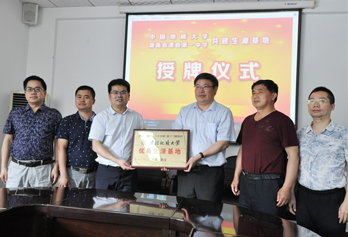 5月25日,副院长龚健回到母校澧县一中,亲自把中国地质大学优质生源基地牌匾交给学校校长毛善新。座谈会上,龚健从学校概况、培养特色、学校环境、学科概况等方面详细介绍了中国地质大学的基本情况,并重点介绍了学校积极推进“教授选才”的自主招生模式及相关优惠政策。“作为澧县一中人,深知母校的办学底蕴和办学实力,我会在中国地质大学等着学弟学妹们的加入,帮助他们实现人生理想。”毛善新校长对龚健的到来表示热烈欢迎,并建议利用更多的机会进行互访活动,以促进高中生对高等院校的了解,加强高考研究,实现高考双赢。
