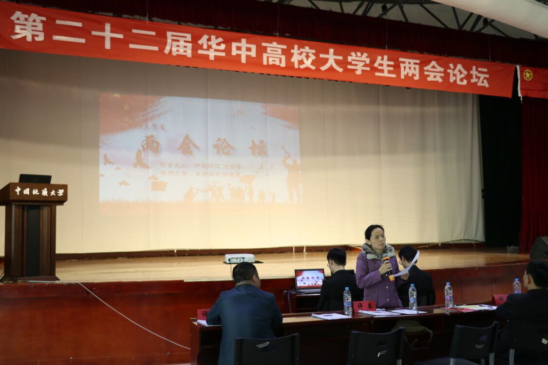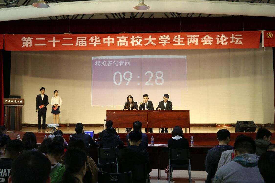 举办的“第二十二期华中高校大学生两会论坛”在大学生活动中心二楼演播厅举行。担任此次活动的评委老师有学工处副处长张建和老师、校团委副书记姜明敏老师、马克思主义B体育
