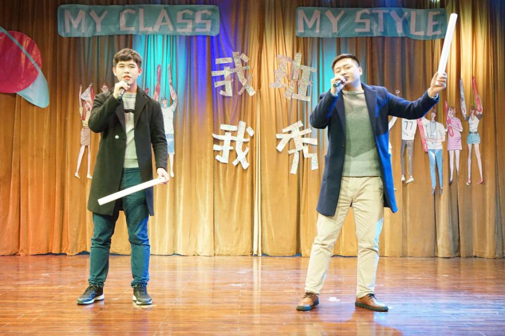 2018级新生9个班级按照抽签顺序依次上台进行班级风采展示。