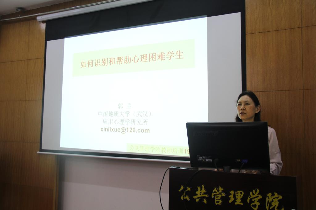 四个年级班主任/学务指导、全体辅导员出席本次会议。培训会邀请学校应用心理研究所郭兰教授主讲。