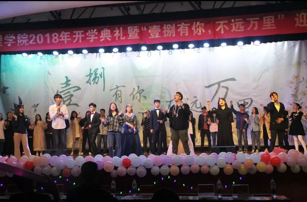 2018年开学典礼暨“壹捌有你,不远万里”迎新晚会在大学生活动中心二楼演播厅举行。B体育