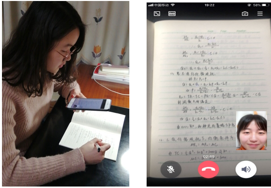 预备党员宋文恬在线上和王昕娆同学一对一交流学习