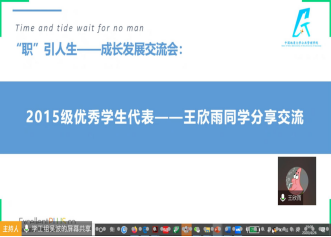 王欣雨、彭逸伦、马伟蕊三位学长学姐分享了自己大学四年丰富多彩的学习生活。