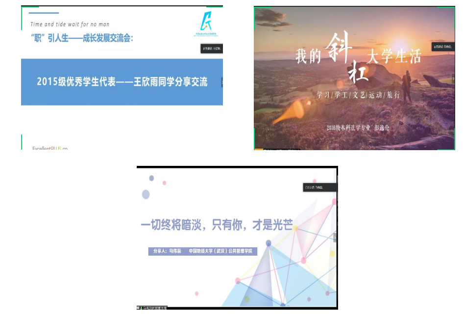 会议开始,王欣雨、彭逸伦、马伟蕊三位学长学姐首先做分享。王欣雨学姐为大家寻找学生工作和兴趣爱好的平衡点支招;彭逸伦学长主要介绍了保研经验和提升时间利用效率的方法;马伟蕊学姐则从科研科创活动的角度为同学们的未来规划提供参考方向。三位学长学姐分享内容丰富,使大家受益匪浅。分享后提问环节大家踊跃和学长学姐们进行了提问交流。