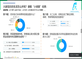 会议的第二部分,吴波老师与2018级全体同学进行分享交流。通过回顾同学们过去的大学生活以及疫情期间的学习生活状况,吴波老师细致地分析了大家的学习生活状况,鼓励大家要在未来的两年中砥砺前行。吴波老师从学习、生活、未来规划三个方面为大家提出建议:在学习方面,吴波老师以大家两年的绩点趋势图为切入点,告诉大家成绩是核心竞争力,希望同学们认识到学习的重要性;在生活方面,吴波老师为大家在疫情期间的积极学习状态而欣慰,提醒同学们在家要做到慎独自律,时刻保持清醒;在未来规划方面,吴波老师希望大家能够充分认识自我,明确自己的未来规划。最后,吴波老师寄语大家要珍惜时间,对自己的未来负责,在成长的道路上能够不负青春时光。