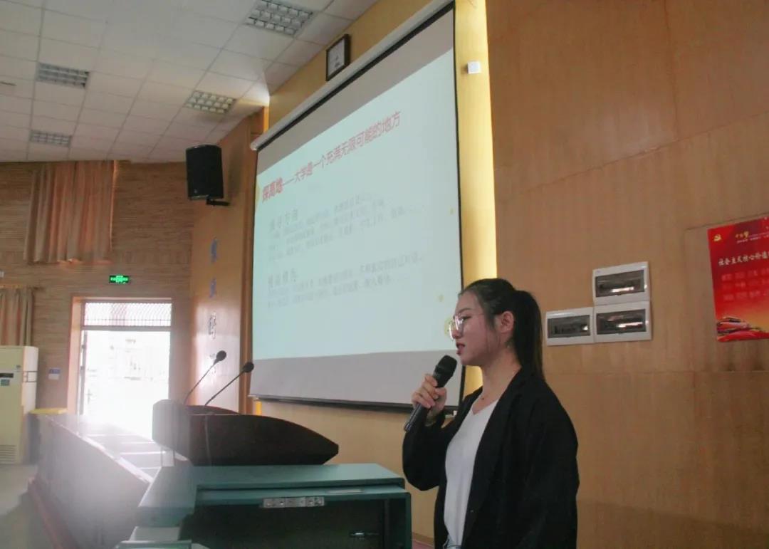 大会伊始,王欣雨老师将“理想中的大学”和“现实中的大学”进行了比较,引起20级新生的共鸣。即使现实和理想的有点偏差,我们的身份也变得更加多样,但我们始终需要记住一个身份,也是我们现阶段最本质的身份:大学生。对此王欣雨老师谈到了作为学生的底线,并教导我们一定要守规矩,不要逾越底线。