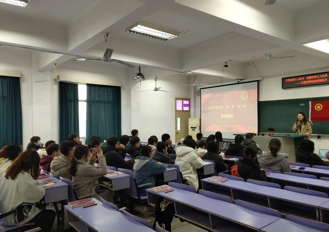 特色,培养理想信念坚定,专业技能扎实,综合素质突出的公管学子,为国为党育才。院党委副书记刘国华老师、团委副书记李姝慧老师、学工组王青涛老师、王欣雨老师出席此次开班典礼,“为公班”全体成员参会。典礼由李姝慧老师主持,共分为八个议程。
