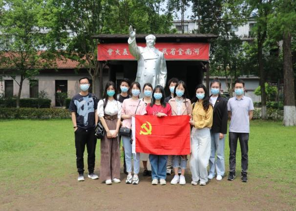 最后师生一行来到了中共五大会址。1927年4月27日,中国共产党第五次全国代表大会在这里举行。中共五大是在蒋介石集团发动四一二反革命政变之后半个月,武汉汪精卫集团日趋反动,中国革命处于危急关头召开的。李姝慧老师向青年学生骨干们讲道:“中共五大在党的历史上第一次选举产生了中央监察委员会,加强党的自身建设,作为青年学生骨干,同学们也要以严格的标准要求自己,在平时的学生工作中更加注重纪律建设。”如今会场前绿草茵茵,房楼依旧,党旗鲜红,宣誓人代代传承。全体成员向为新中国做出卓越贡献的革命先驱爱国志士们致敬,党徽闪耀在胸前,党的精神永远铭记心中!