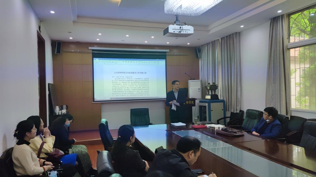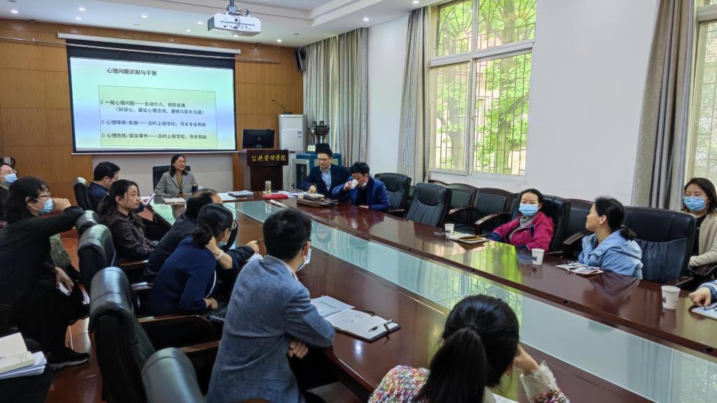 《班主任工作条例》《心理危机干预实施细则(试行)》《全员促进就业工作实施方案》,与会人员围绕上述文件进行交流。毕业年级辅导员吴波、王青涛分别介绍本科生和研究生毕业生当前就业状况。