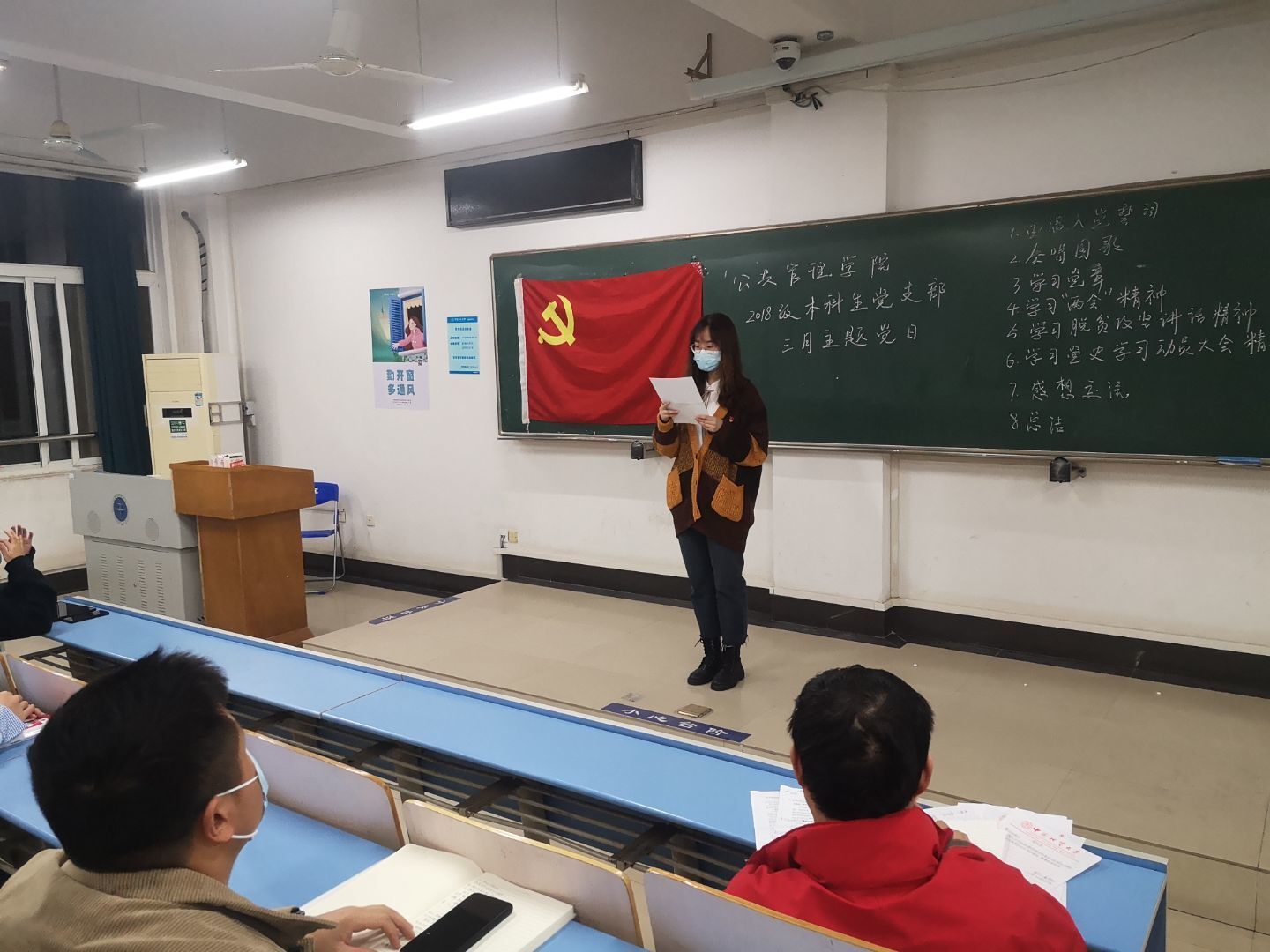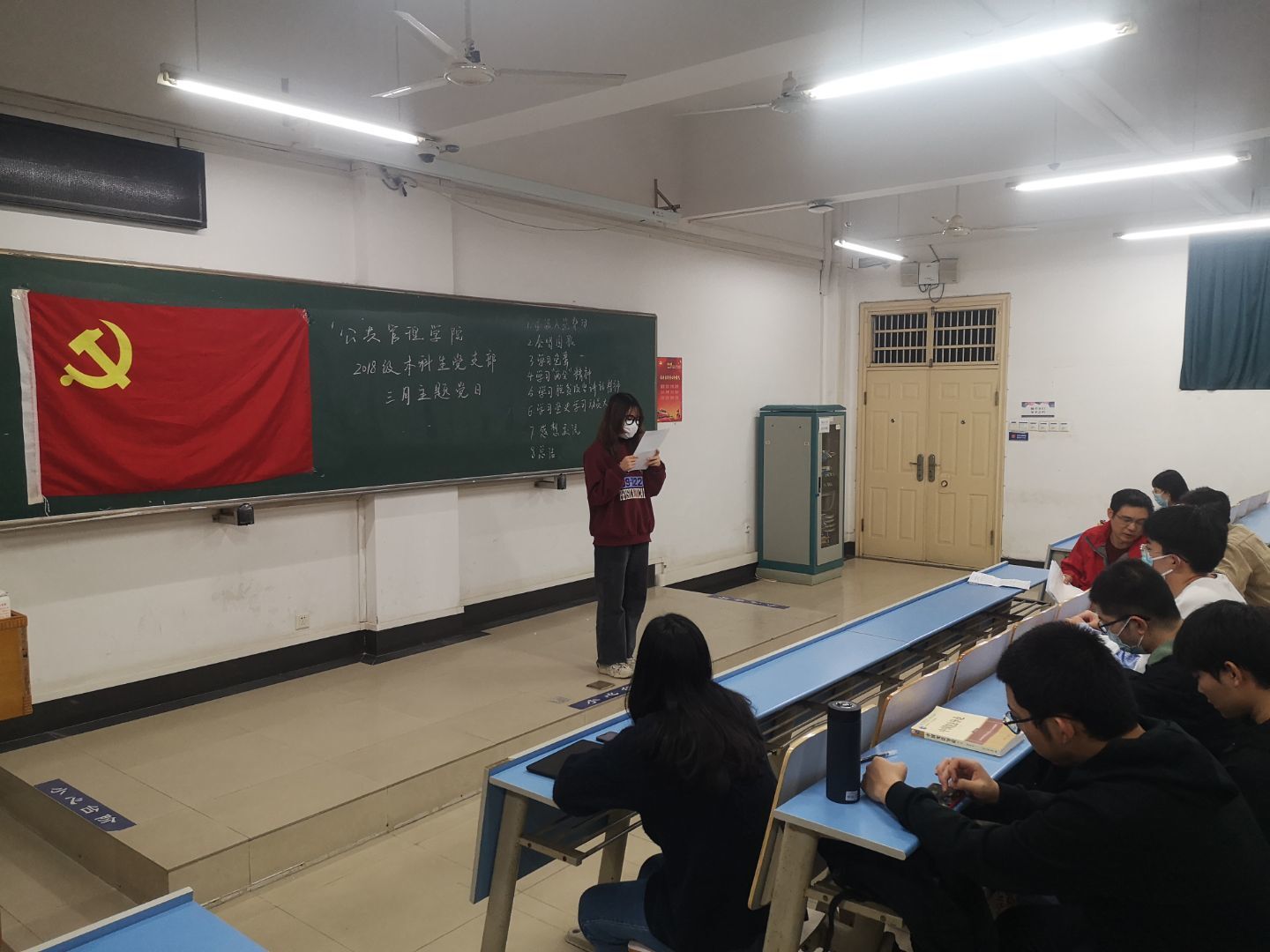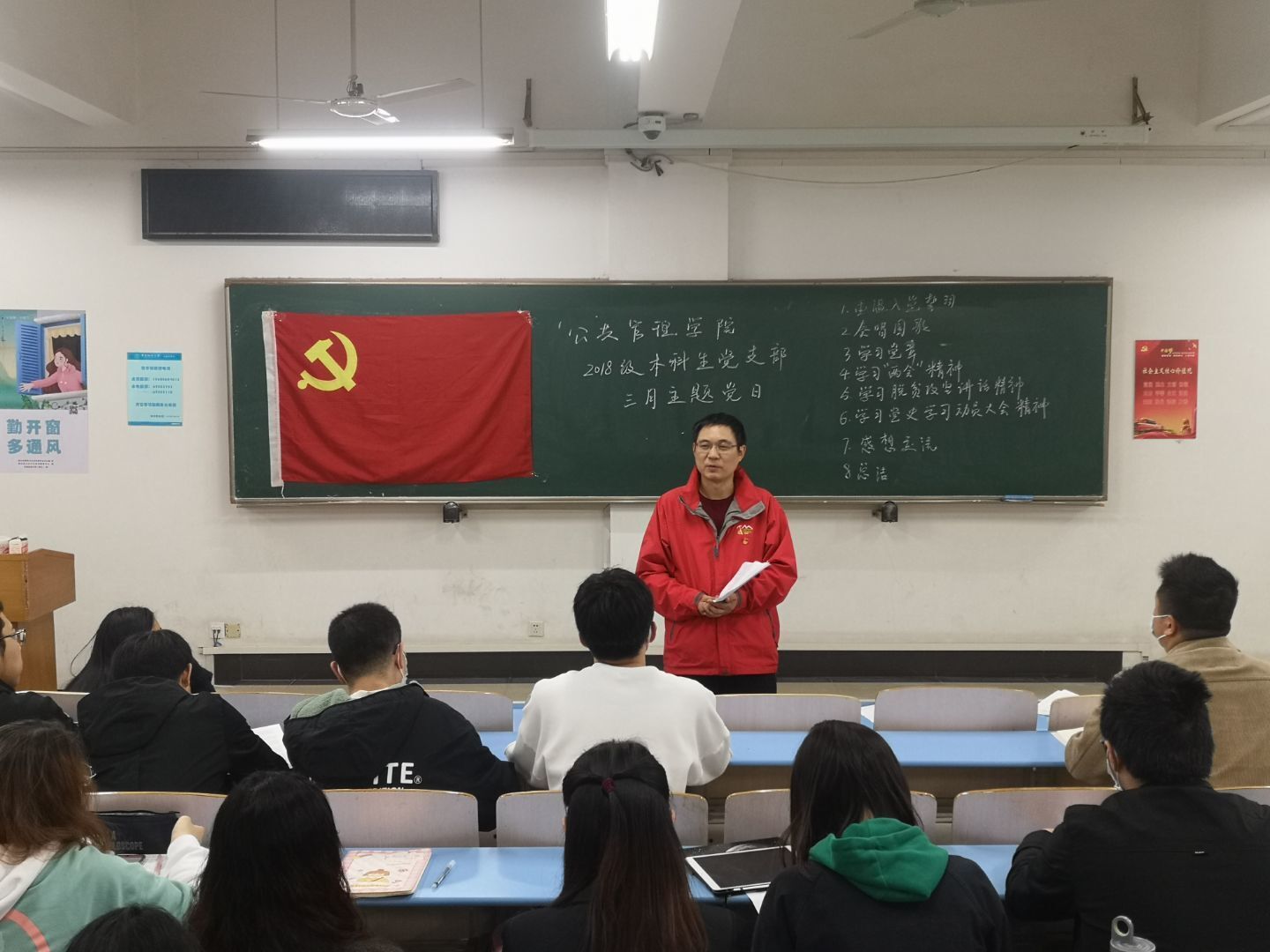 3月25日,2018级本科生党支部全体在北综204召开三月份主题党日。本次主题党日由行管一班、行管二班筹办。主题党日召开前,支部全体同志进行了体温测量,并全程佩戴口罩参会。B体育