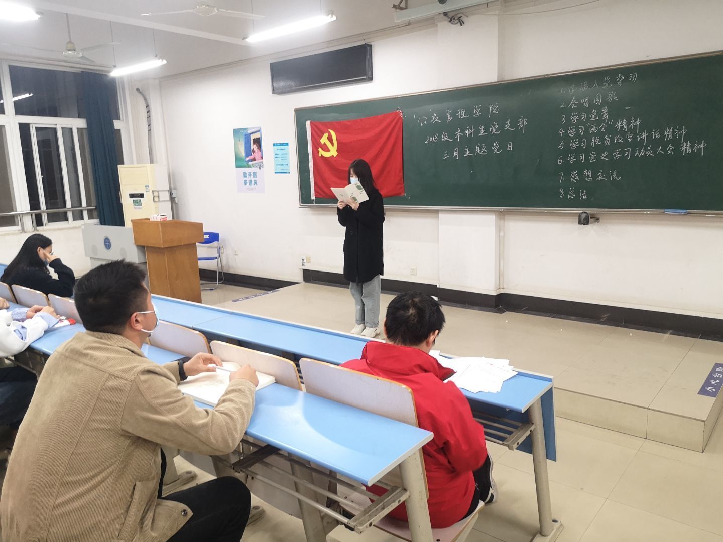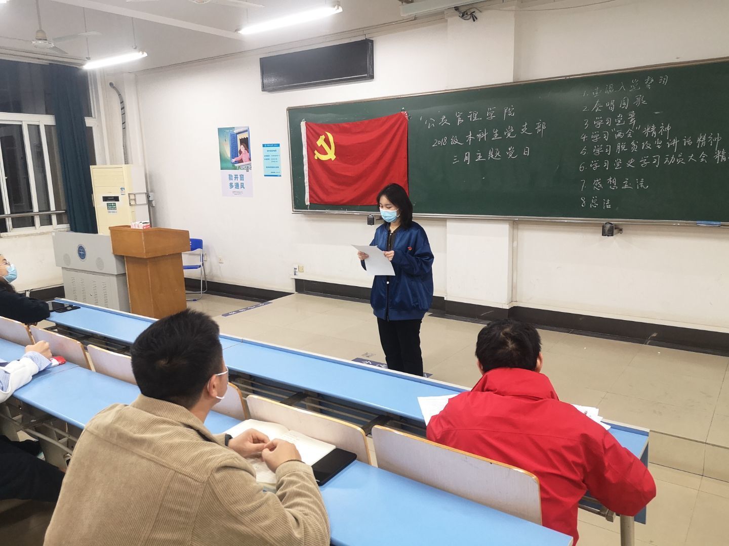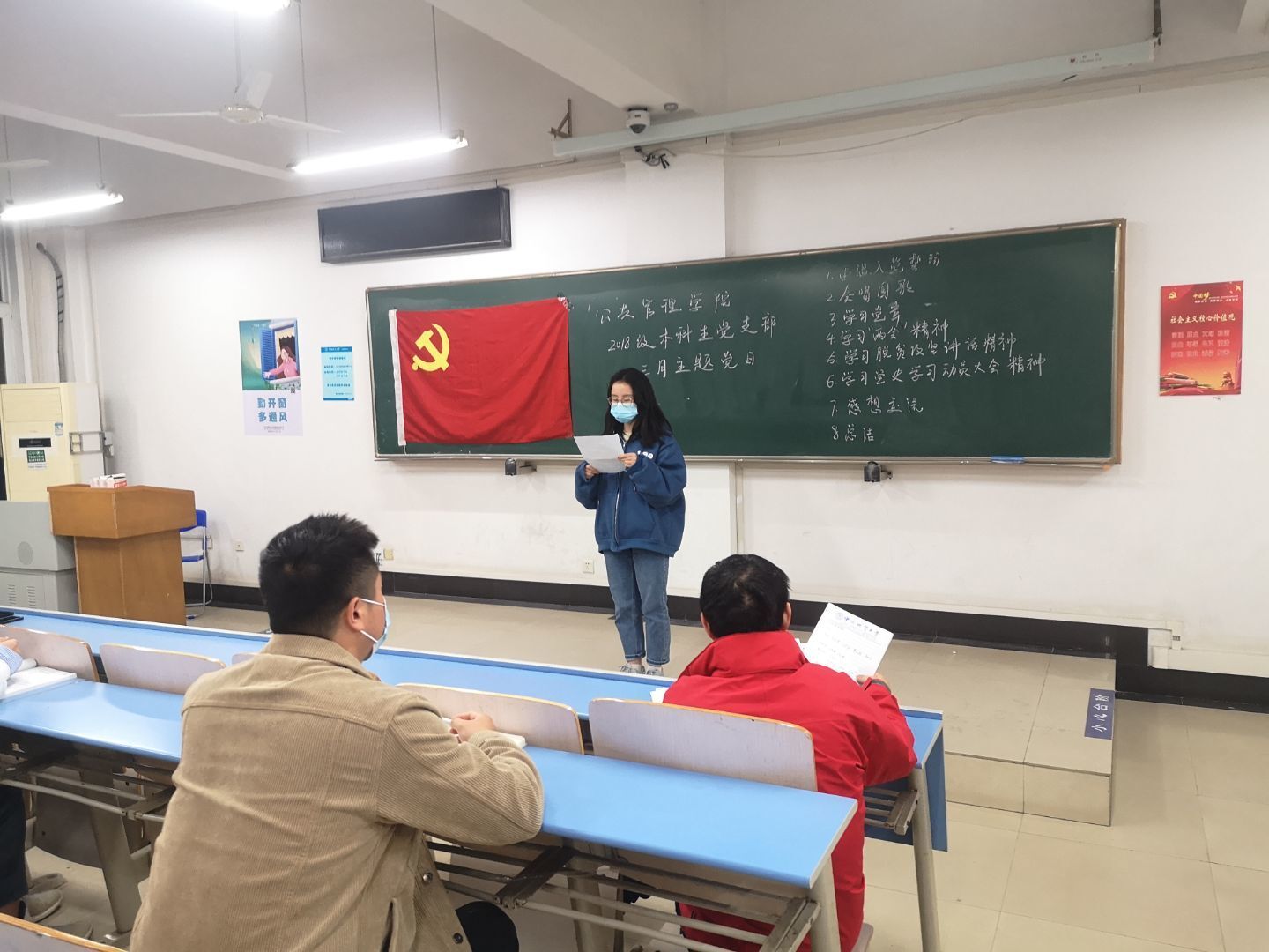 3月25日,2018级本科生党支部全体在北综204召开三月份主题党日。本次主题党日由行管一班、行管二班筹办。主题党日召开前,支部全体同志进行了体温测量,并全程佩戴口罩参会。B体育
