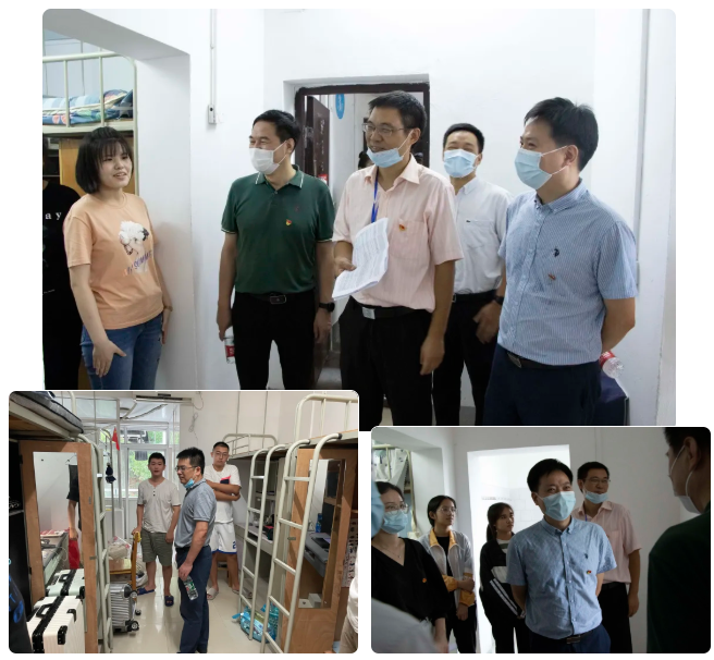 下午16:00,校党委书记黄晓玫、校党委副书记王林清以及学校办公室、学生工作部、研究生工作部等部门领导来到B体育