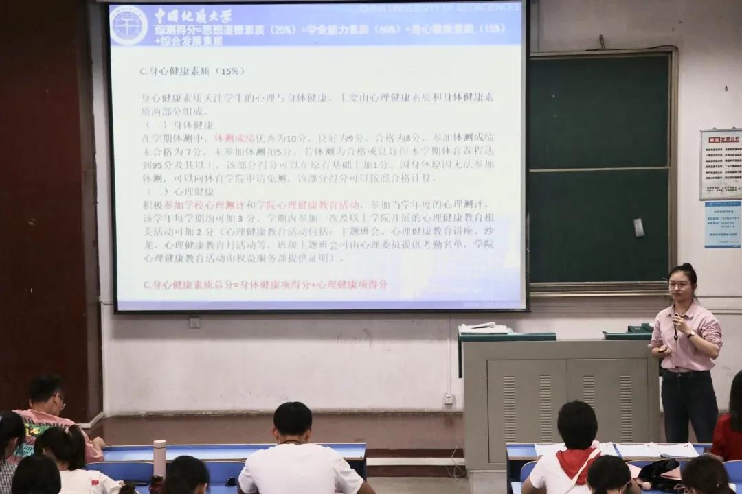 的学习制度和学风。经过老师的讲解,“综测”“绩点”等那些原本不是很熟悉的名词在大家的脑海中逐渐清晰。