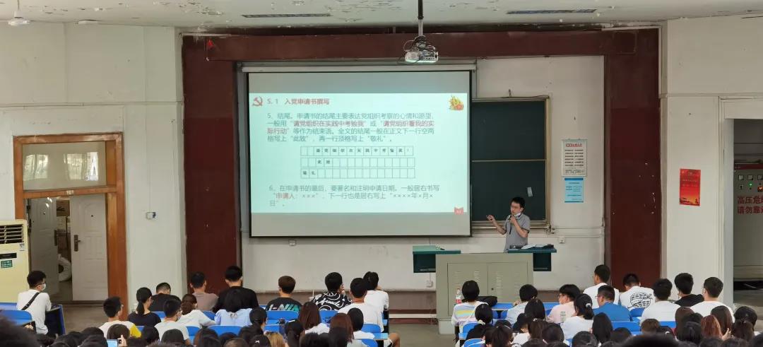 接着,他又向同学们介绍了党员标准和入党流程,对党员发展及流程作了细致的说明,使同学们更清晰地了解入党的相关过程,同时提醒同学们树立正确的三观,并端正自己的入党动机。最后,王青涛老师为同学们撰写入党申请书提供了指引,并强调了相关注意事项。