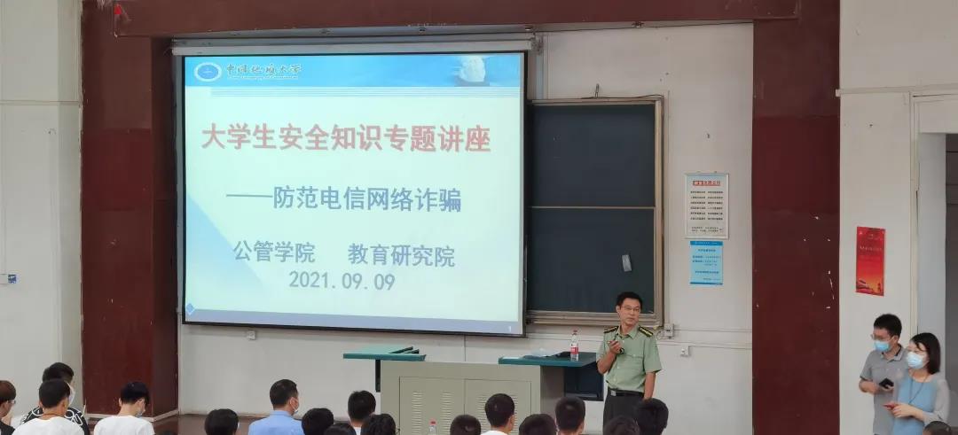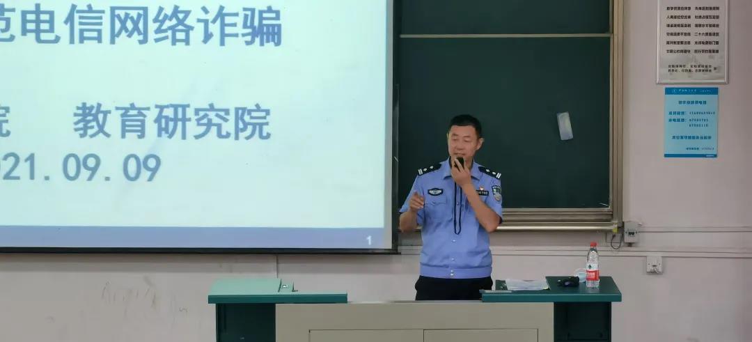 讲座开始,刘国华书记向大家说明了诈骗案件的危害性,同时强调,希望通过本次讲座,能够提高同学们的警戒心和辨识力,防止电信诈骗的发生。