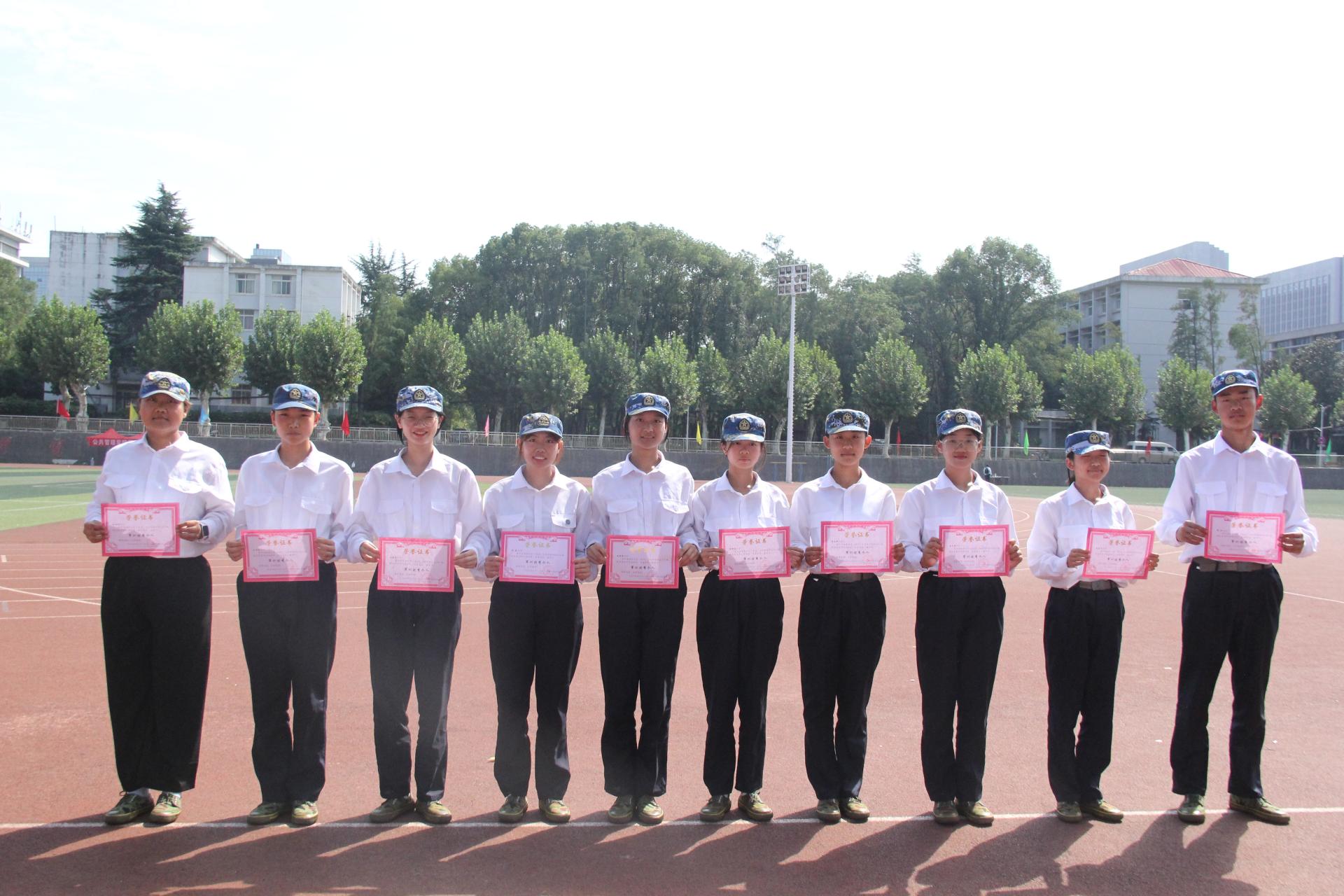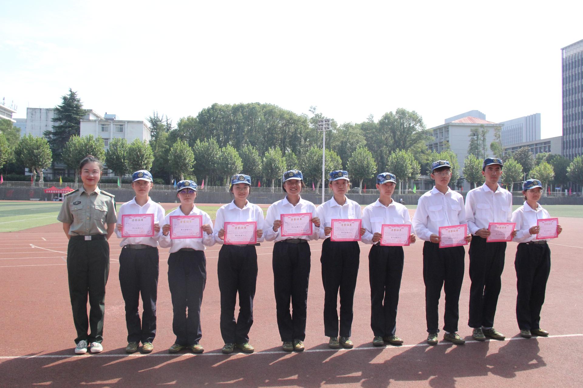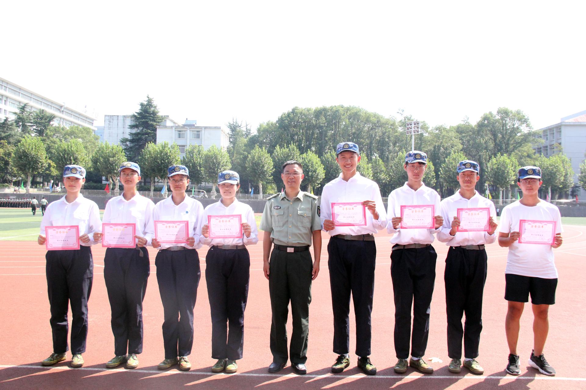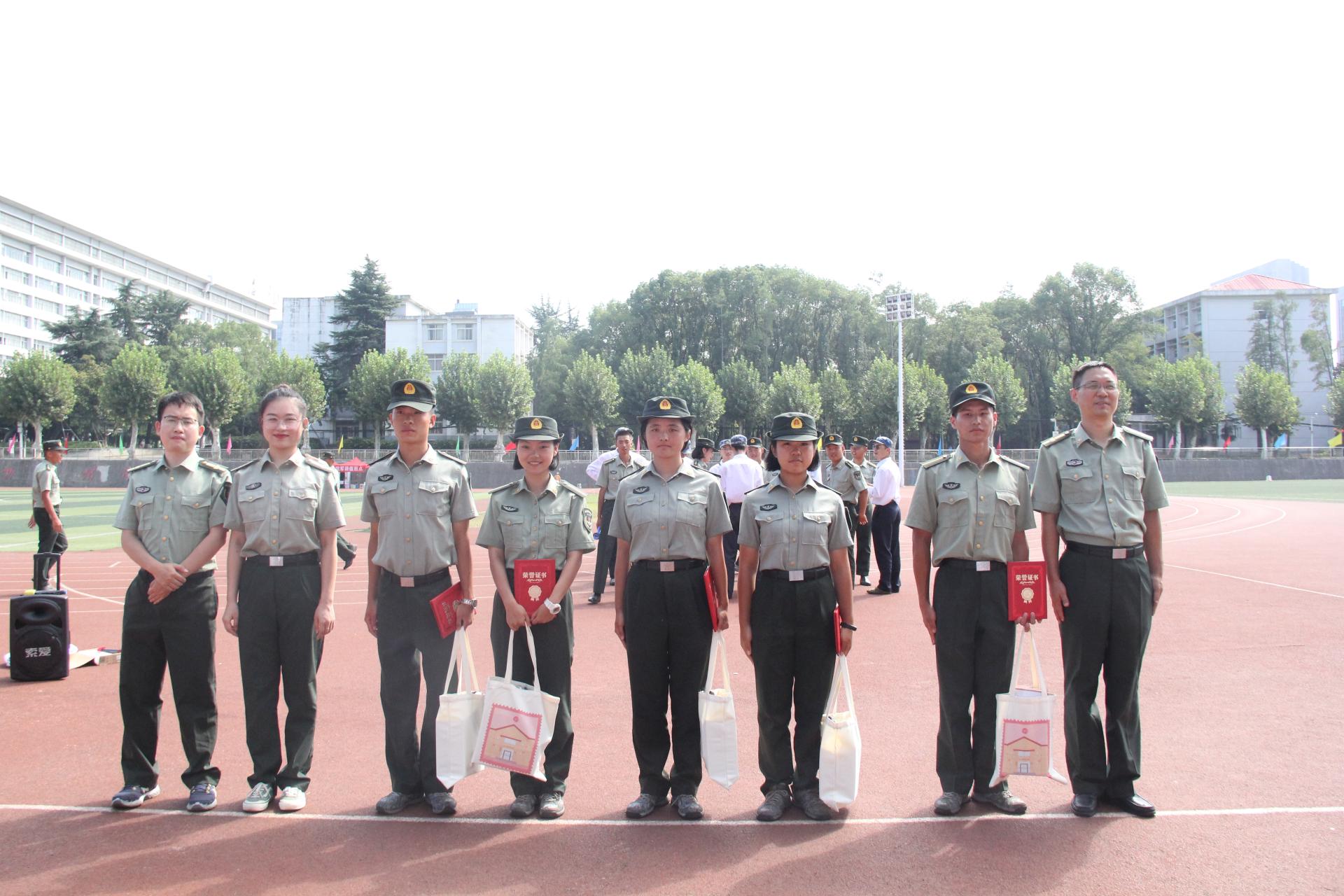 党委宣读了关于对军训标兵、优秀个人的表彰决定,各位老师为受表彰同学颁奖并合影留念。