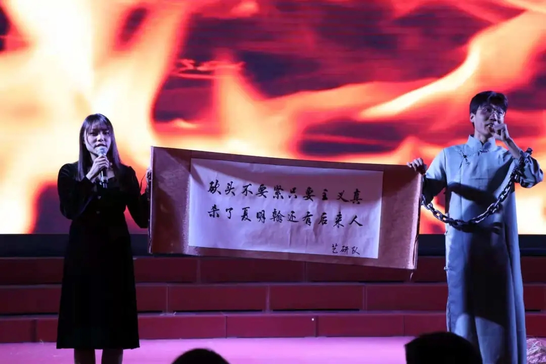 “我可以牺牲我的生命,绝不放弃我的信仰!”“杀了夏明翰,还有后来人。”艺研队将目光聚焦于英雄夏明翰,以朗诵的形式展现了夏明翰坚定革命意志、崇高革命信念的故事。薪柴会燃尽,生命亦有限,但信仰之火必将生生不息,代代相传!下一个出场的是爱祖国爱人民队。他们通过朗诵的方式,表现了梁思成的民族情怀以及对中国现代建筑发展的卓越贡献。