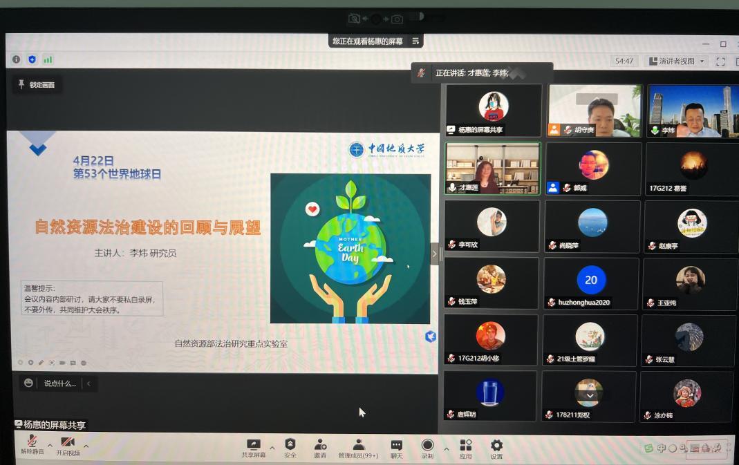 成功举办“422地球日”专题线上研讨会。校党委副书记唐辉明出席会议并致辞,自然资源部不动产登记中心(法律事务中心)副主任李炜以“自然资源法治建设的回顾与展望”为主题作专题报告,我校公管B体育