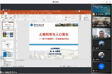 的高云霄、杜瀚文、张宸、李海洋、樊孟姣同学围绕国土空间开发利用中的资源环境管理、土地利用绩效、土地功能优化等内容开展了汇报、交流与探讨。