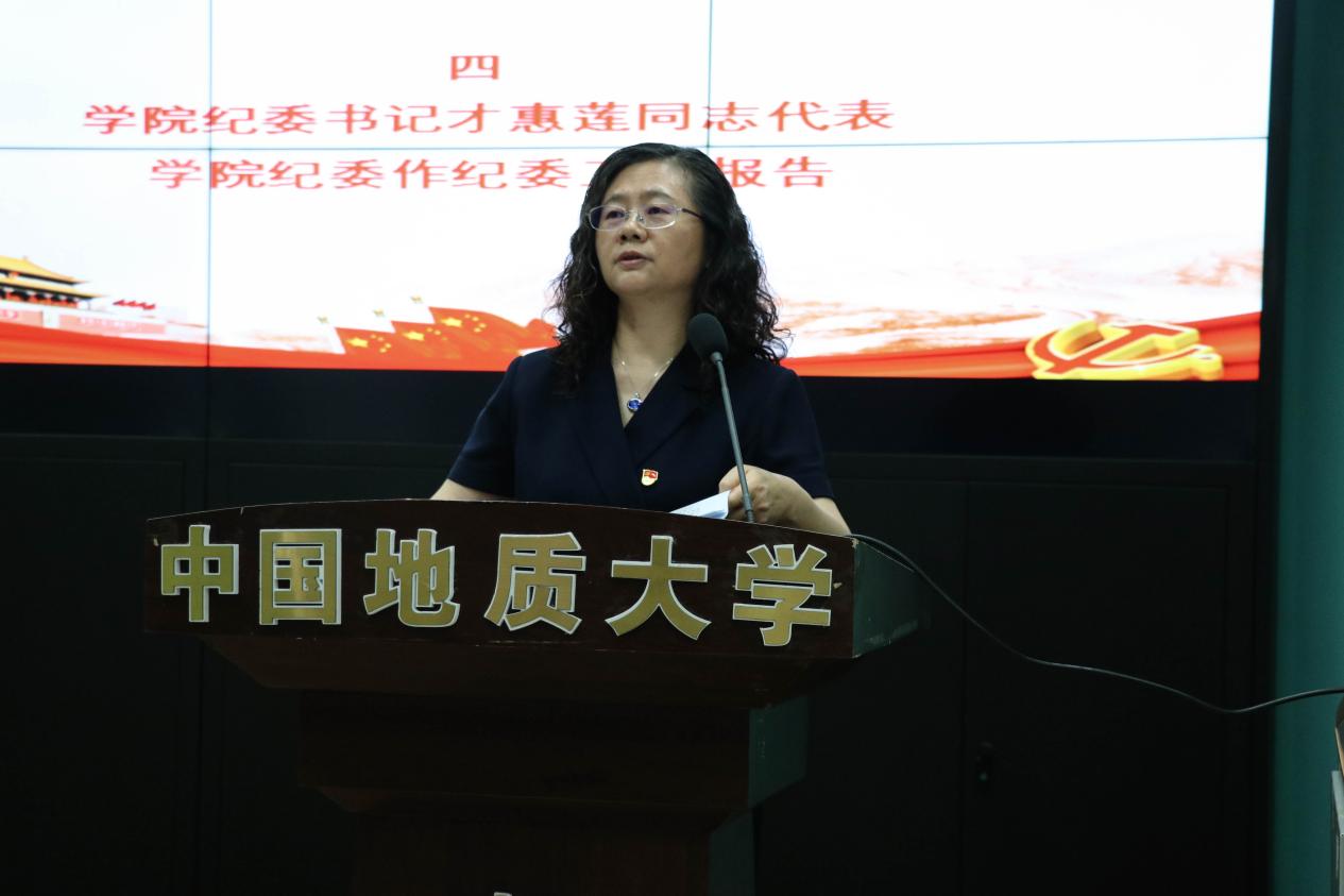 纪委书记才惠莲代表纪律检查委员会作纪委工作报告。