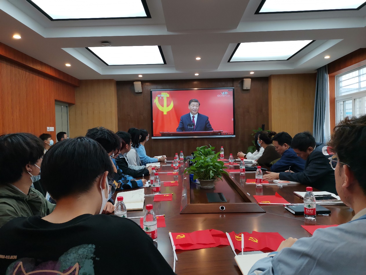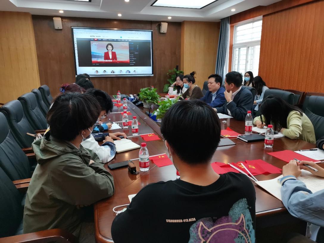 领导、学生党支部书记、团学骨干、教师代表、学生代表在227会议室集中收看,并认真学习习近平总书记见面会上的讲话。