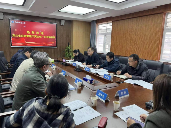 应急管理专业经过近三年的努力探索,已在专业发展、人才培养、科学研究、政产学研用融合发展等方面取得了一系列重要进展,希望能在双方深入合作的过程中,将地大的学科专业优势与自然灾害技术中心的技术优势和需求导向充分融合。贾新军主任对张宽裕书记的欢迎表示感谢,介绍了湖北省自然灾害应急技术中心的发展历程与所承担的主要工作,并高度肯定了B体育官网