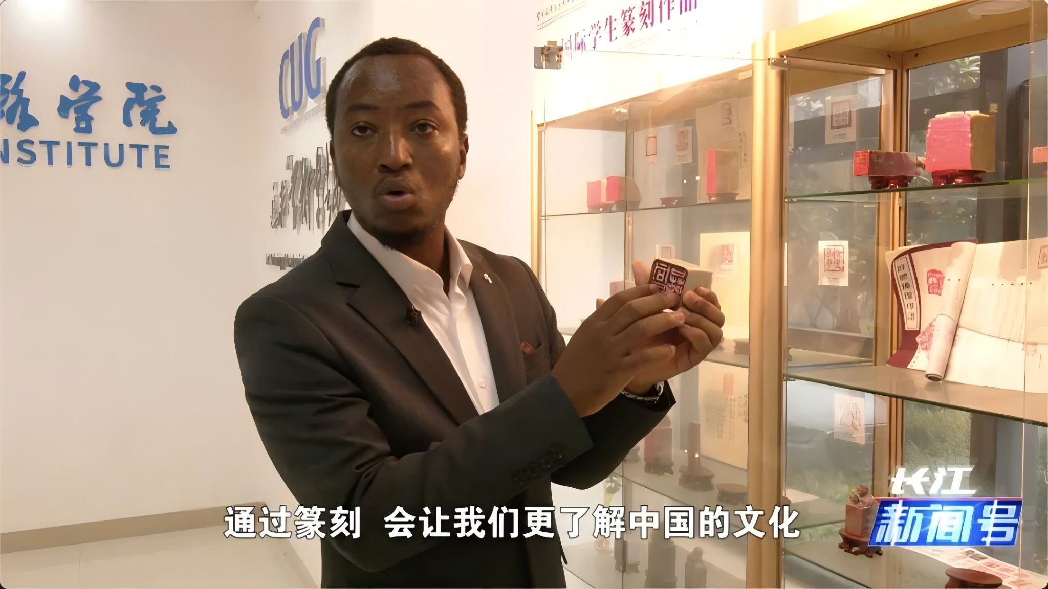一楼的展厅,陈列着国际学生们自己动手完成的篆刻印章、书法、剪纸画等中华传统文化作品。艾力辰说,中国篆刻艺术给他留下了深刻的印象,这种中国传统艺术形式很复杂,但非常有趣,通过学习篆刻,他更深刻领略到了中国文化的魅力。
