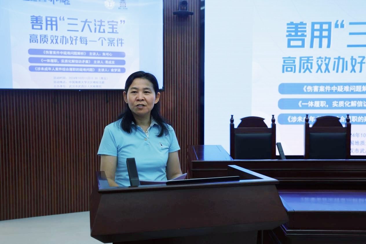 与武昌区人民检察院在中国地质大学(武汉)北区综合楼模拟法庭举办“善用‘三大法宝’,高质效办好每一个案件”主题活动。