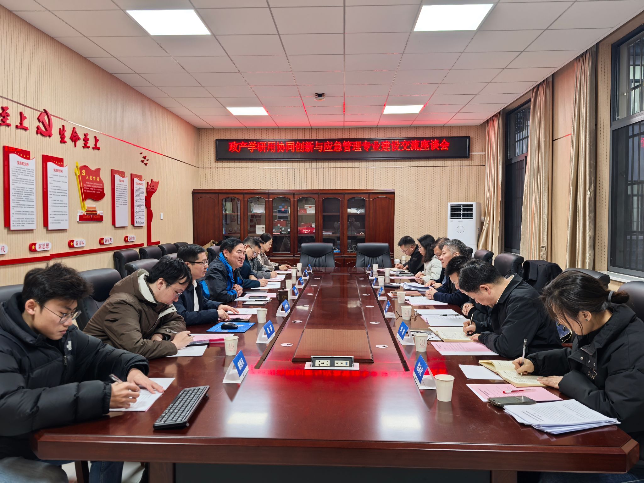12 月 12 日下午 ,政产学研用协同创新与应急管理专业建设交流座谈会在我校南望山校区北区北2楼B105会议室举行。湖北省应急管理厅应急救援中心主任昝军、科技信息化处处长彭仕优、执法处副处长王高锋等,长江北斗经理李剑,我校B体育官网