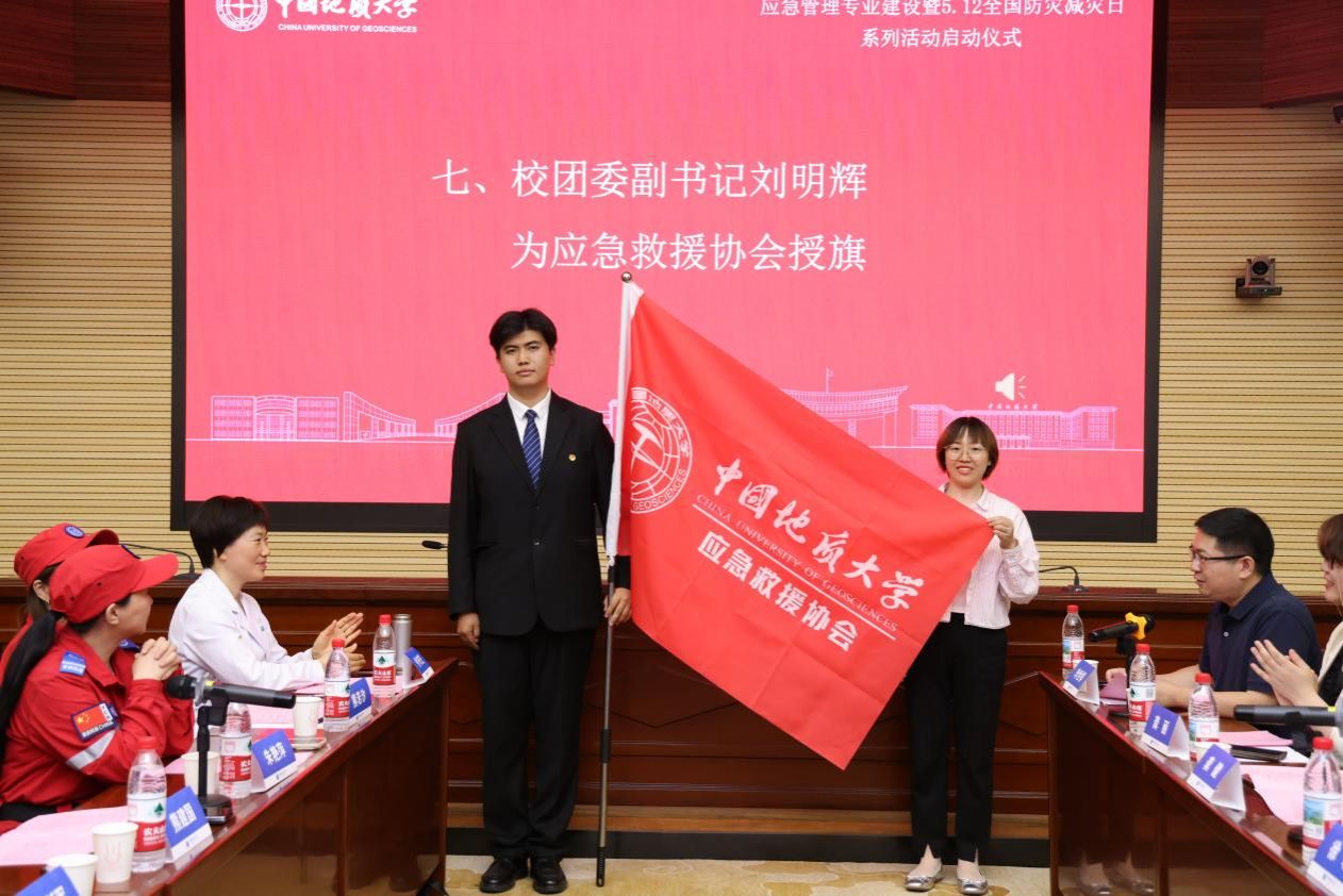 校团委副书记刘明辉为我校应急救援协会授旗,并希望应急救援协会的同学能够胸怀“国之大者”,在实践中磨砺本领,在担当中践行使命,深入贯彻落实“人民至上、生命至上”重要理念。