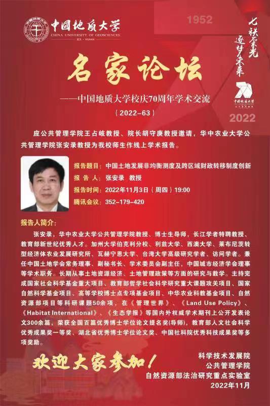 【讲座预告】中国土地发展非均衡测度及跨区域财政转移制度创新(2022年11月3日)