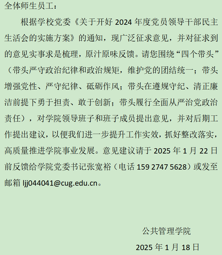 关于征求2024年度B体育 领导班子民主生活会意见建议的公告