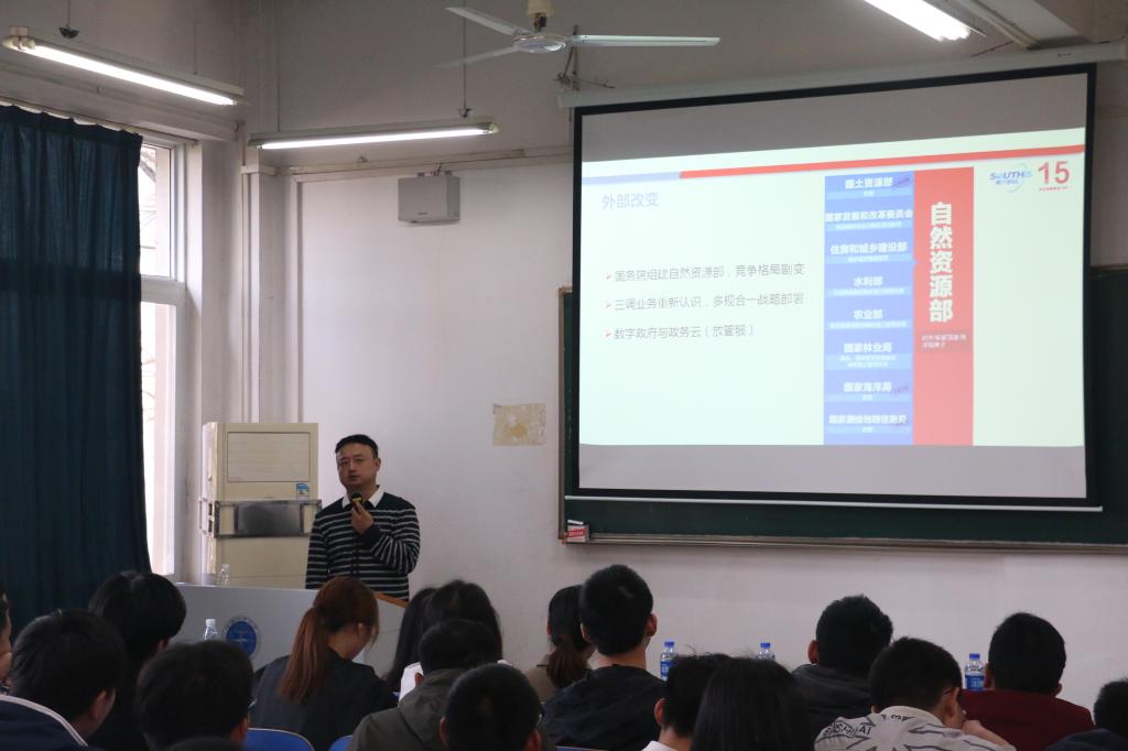 党委副书记胡文勤向参加招聘的同学简单介绍了南方数码公司和参会的公司领导,胡书记提到南方数码公司是中国领先的地理信息产业服务商,同时和我们学校有着很大的源源,每年我们学校、B体育