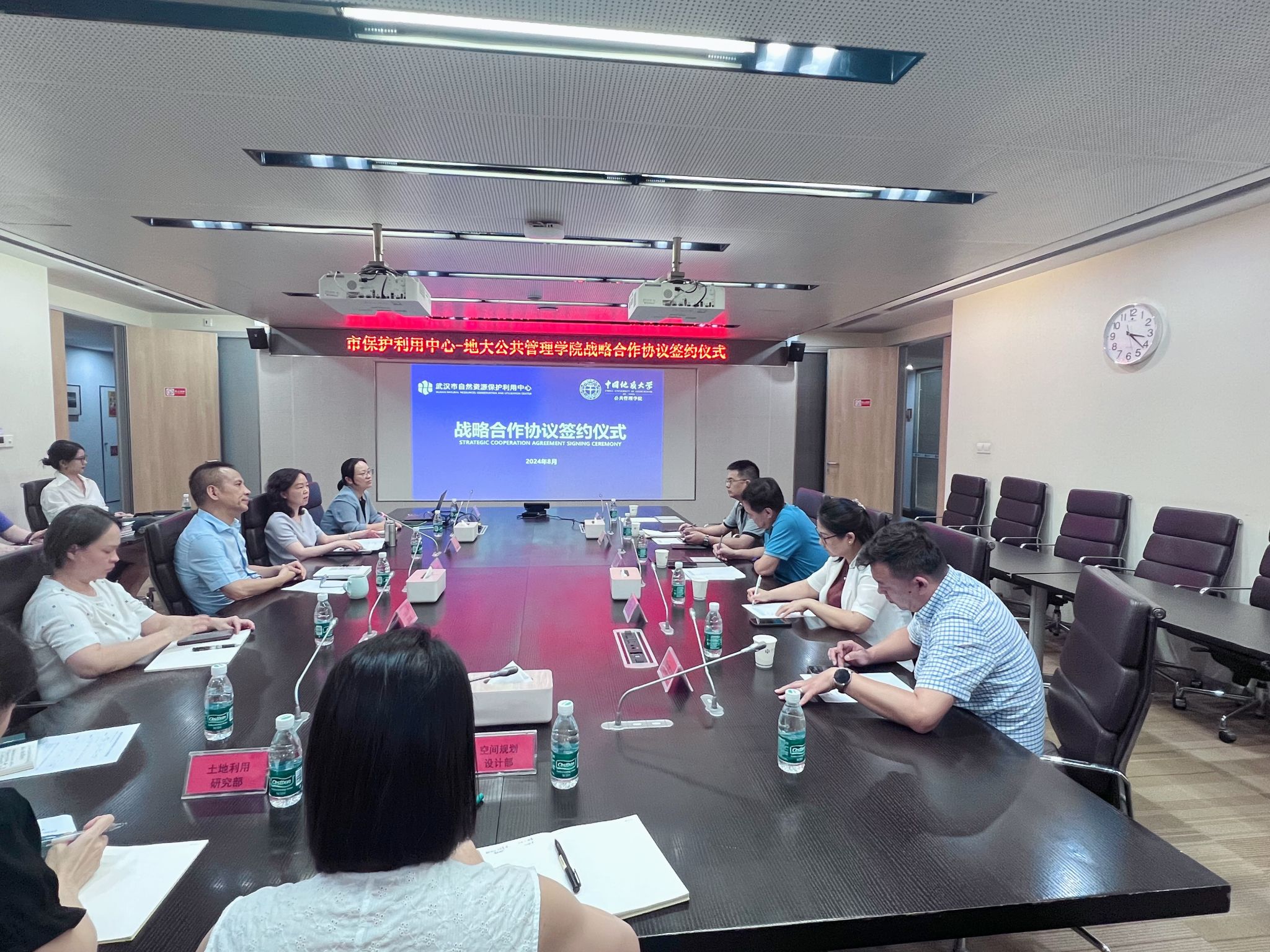 8月1日,B体育 与武汉市自然资源保护利用中心(简称“市保护利用中心”)签署战略合作协议。市保护利用中心党总支书记、主任郑振华、副主任汪云,B体育 党委书记张宽裕、副院长龚健、吕凌燕,双方相关负责人参加签约仪式。