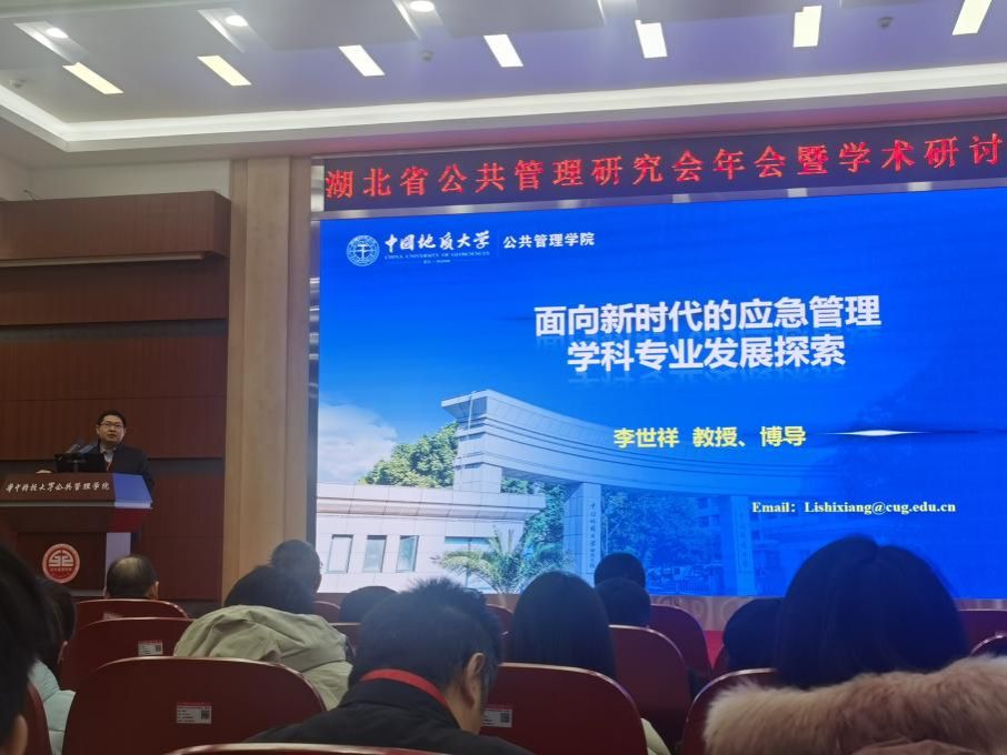 本次会议设1个主会场、1个平行论坛和4个分论坛。在主会场,李世祥教授受邀作了题为“面向新时代的应急管理学科专业发展探索”的年会主题演讲,他分析了新时代应急管理需求与发展趋势,探讨了新时代应急管理学科专业发展现状,介绍了中国地质大学(武汉)应急管理学科专业建设实践和基本经验。